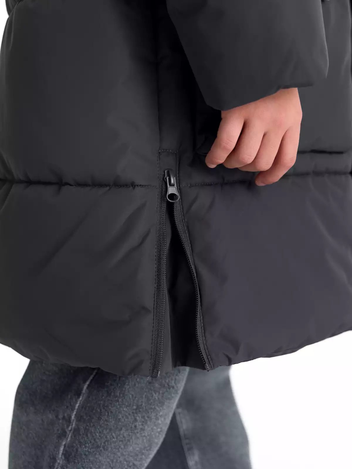 - В боковых швах по низу выполнены разрезы, застёгивающиеся на молнии ;