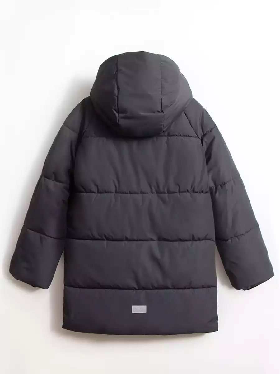 - Несъемный капюшон с дополнительной фиксацией на кнопки в области горловины;