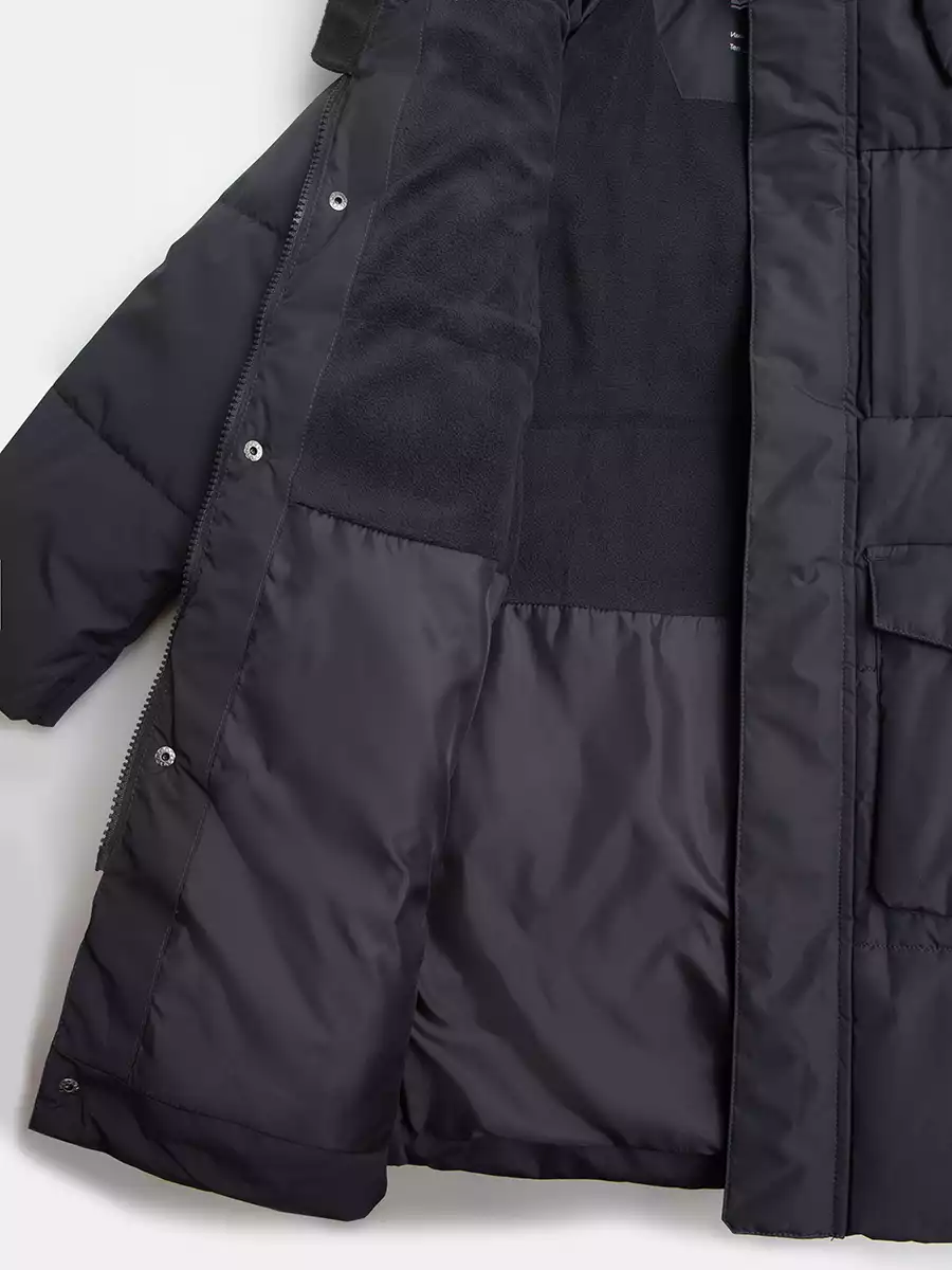 - Внешняя ветрозащитная планка на кнопках вдоль центральной молнии;