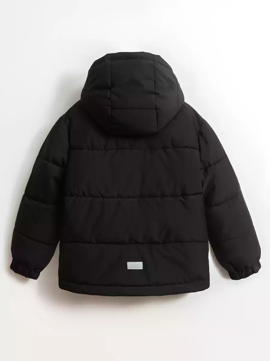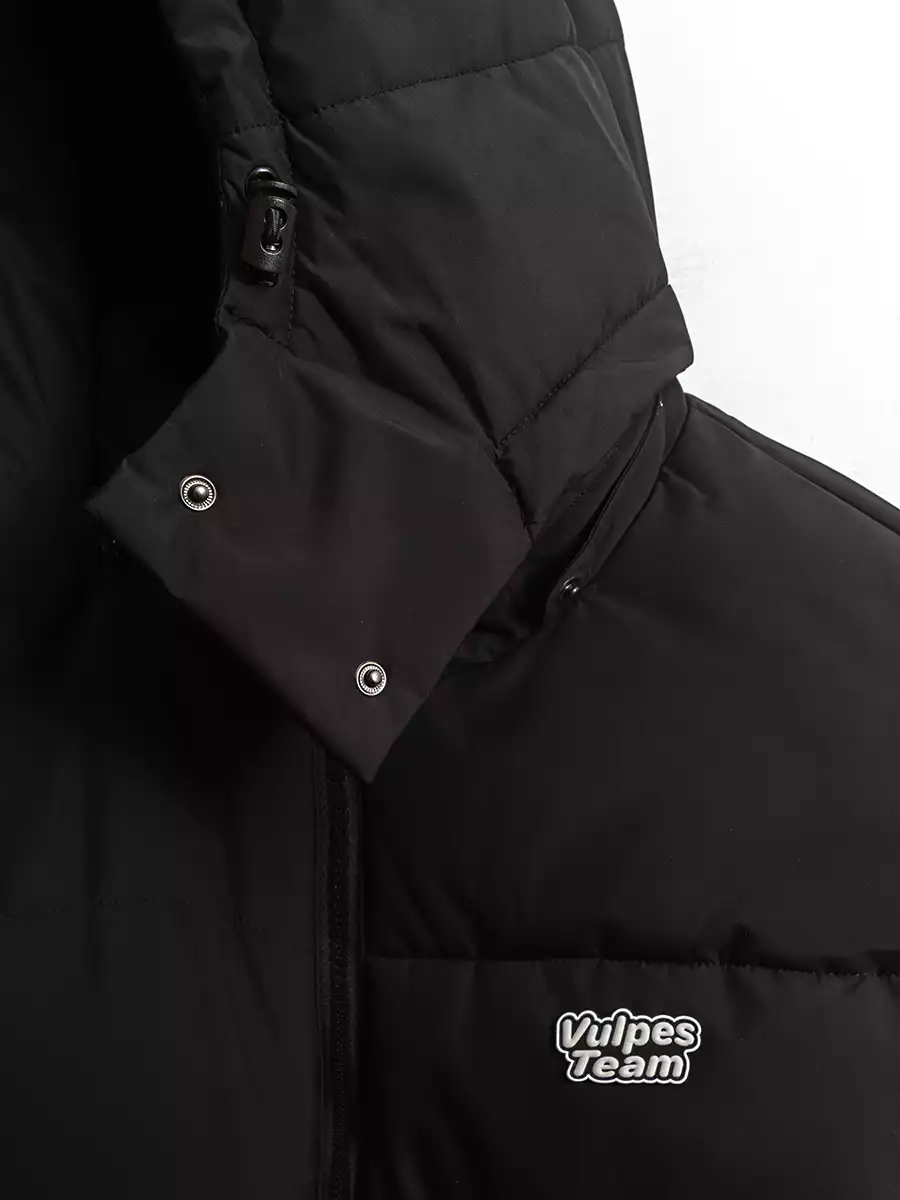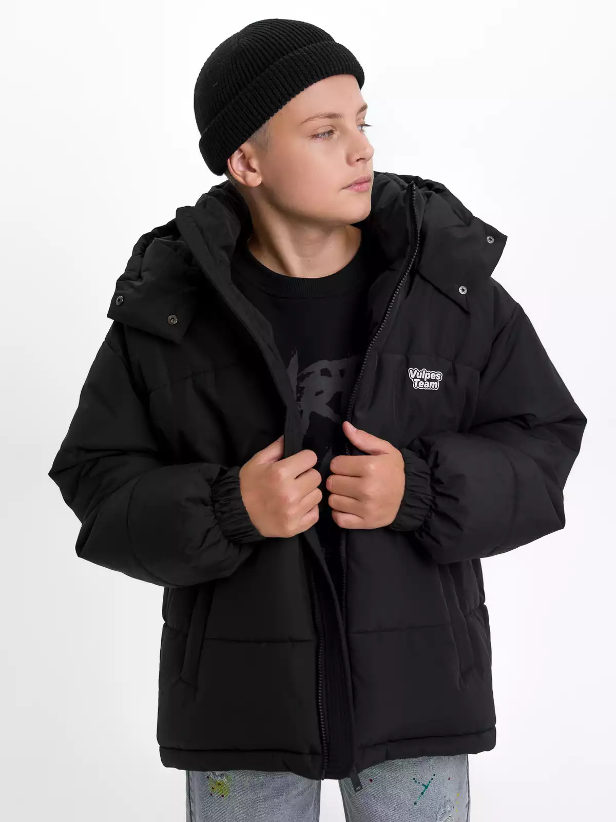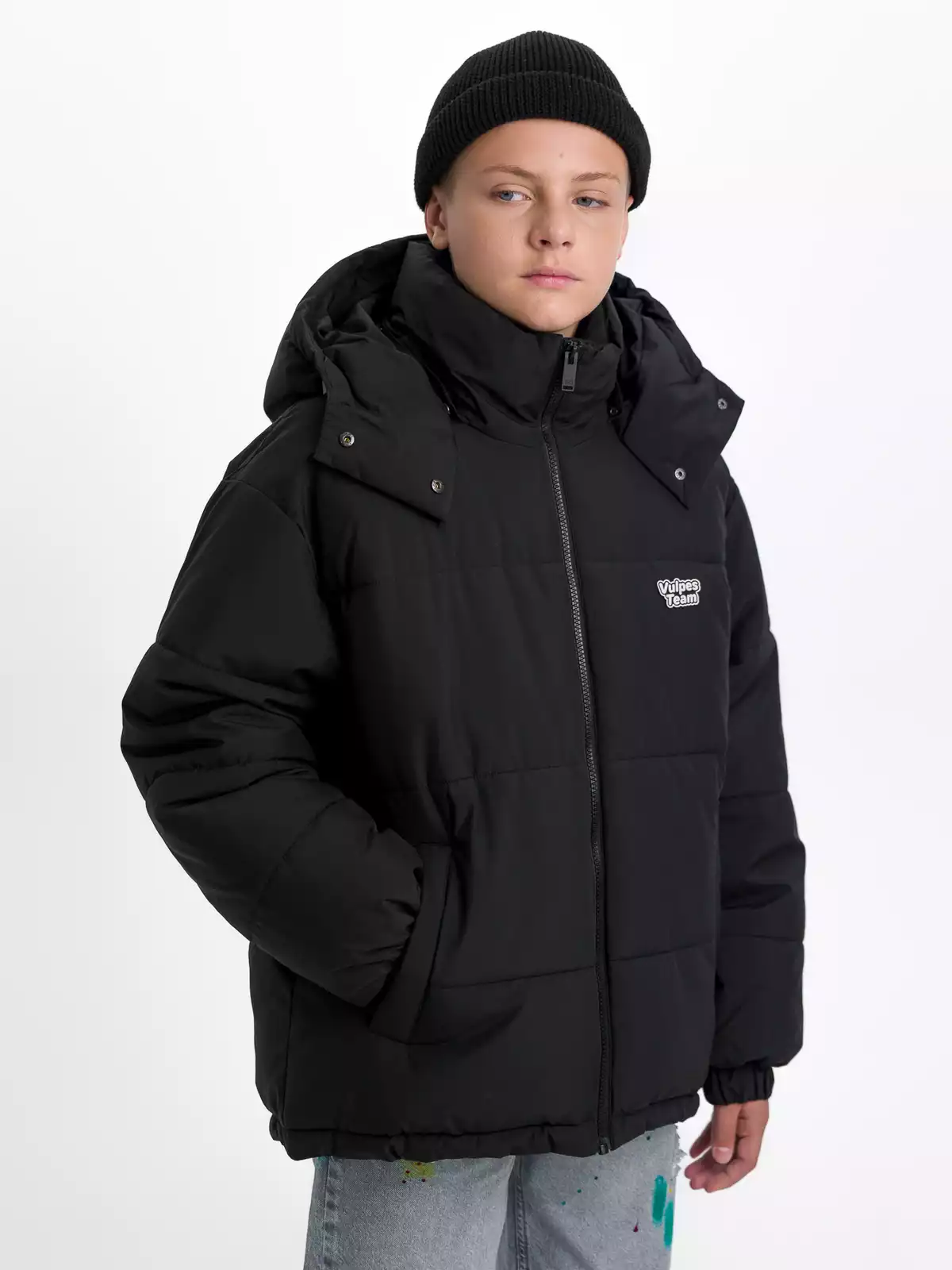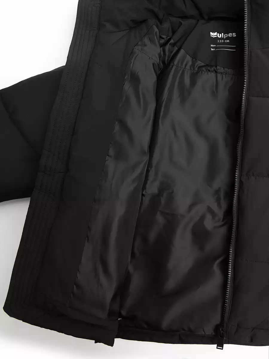 - Съёмный капюшон на кнопках с дополнительной фиксацией на кнопки в области горловины, по краю регулируемая утяжка на резину-шнур с фиксаторами;