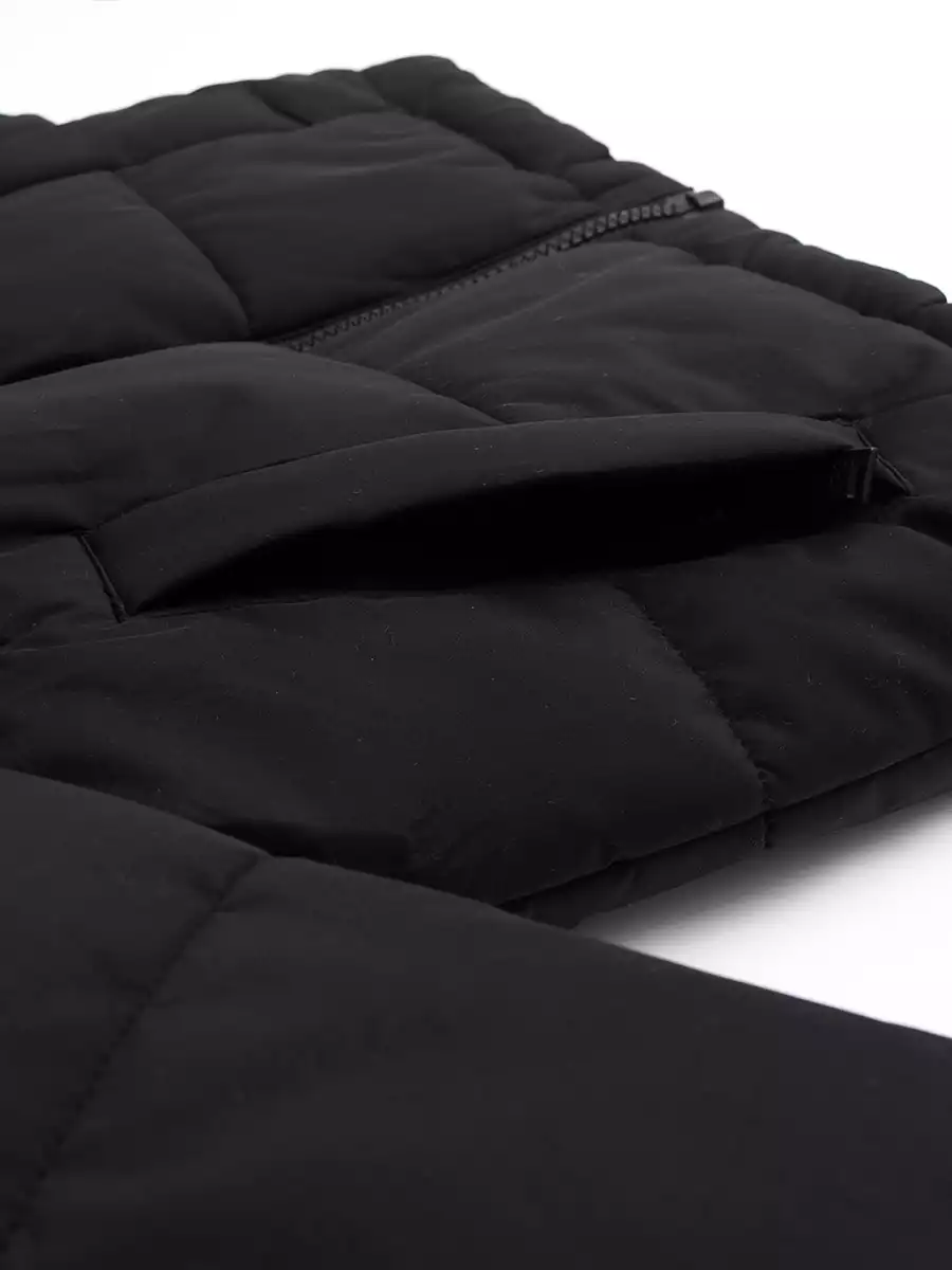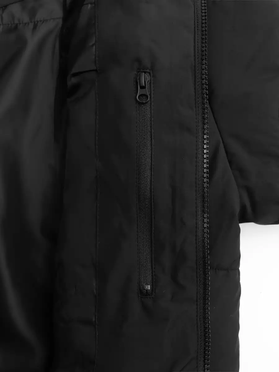 - Карманы: 2 наклонных прорезных кармана на молнии (прикрыты листочкой);