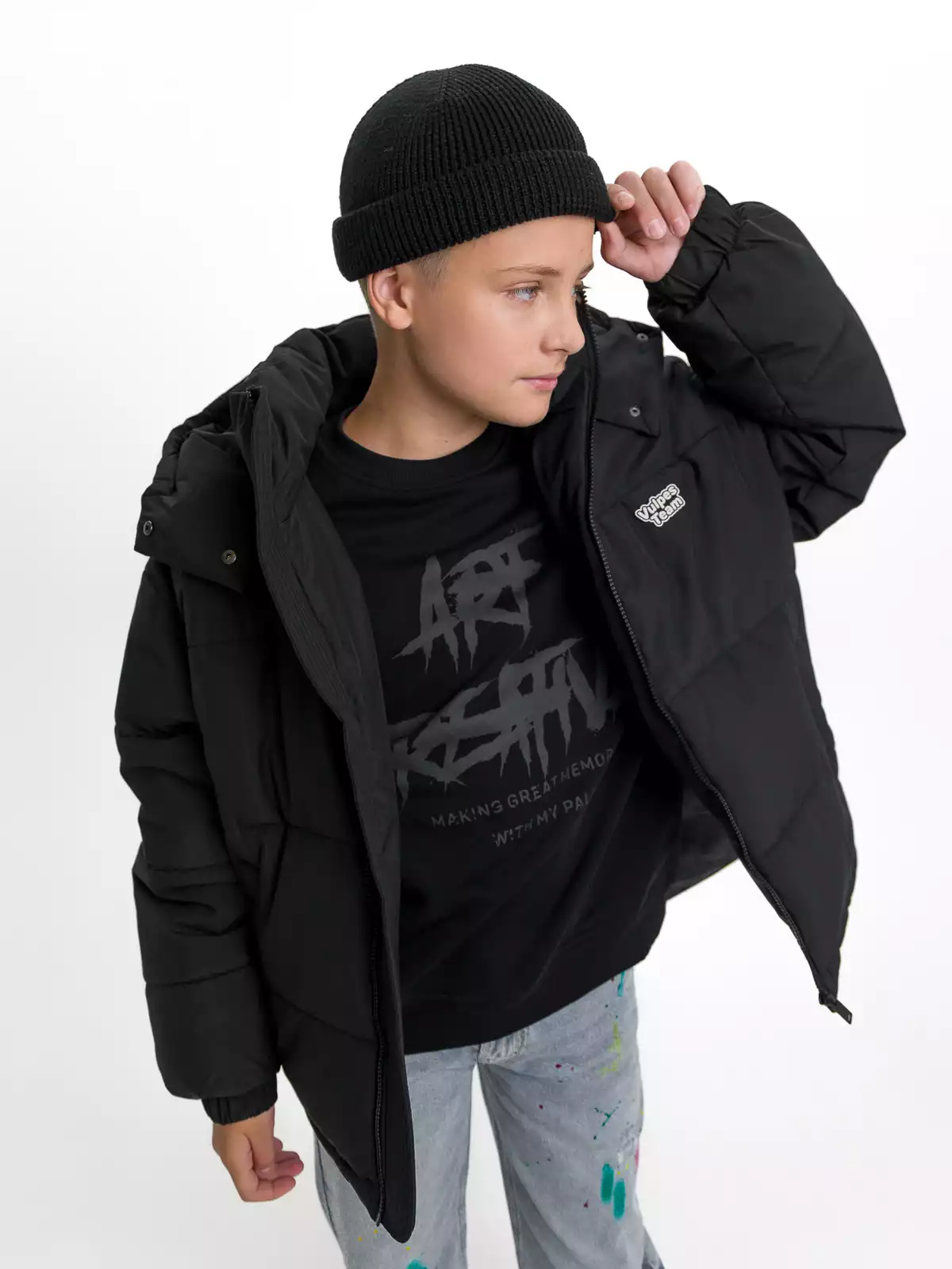- Рукав объемный, низ рукава оформлен манжетой на резинке;